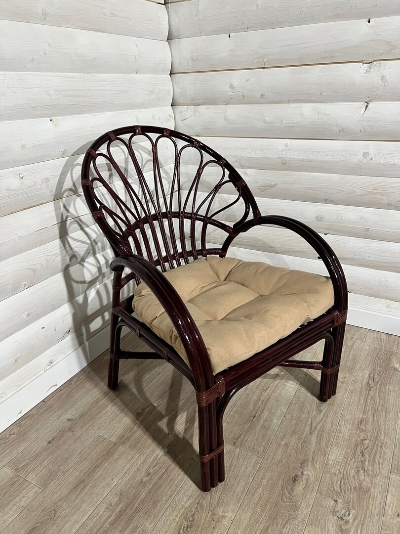 Кресло Бонжур из натурального ротанга красное дерево, подушка бежевая интересное: