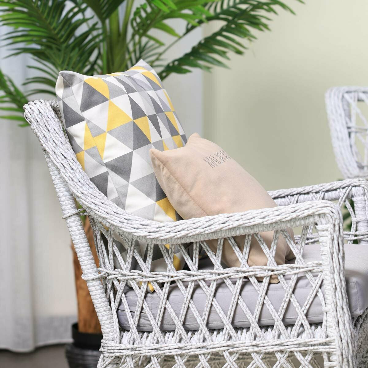 Комплект M-group мамасан, папасан и стол без ротанга белое бежевая подушка