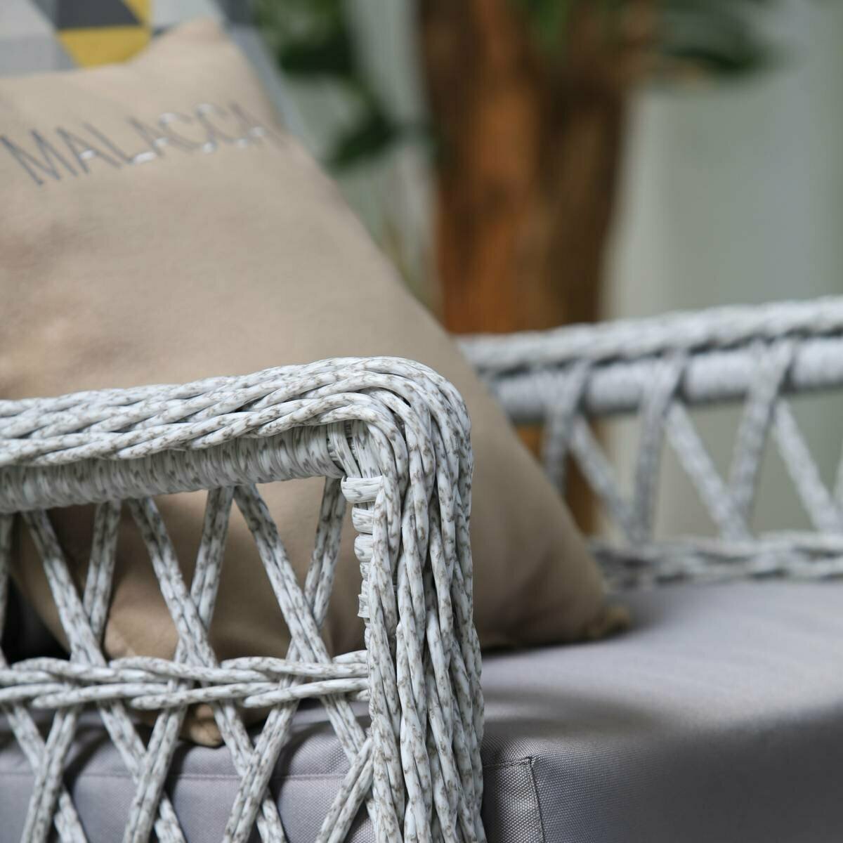 Комплект плетеной мебели Гайс из ротанга с подушками (обеденный стол+скамья+2 кресла), для сада, сицилия+ракушки