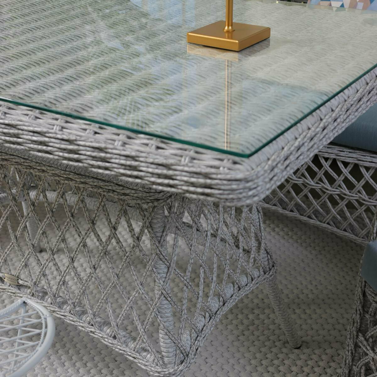 Комплект плетеной мебели Гайс из ротанга с подушками (обеденный стол+скамья+2 кресла), для сада, сицилия+ракушки