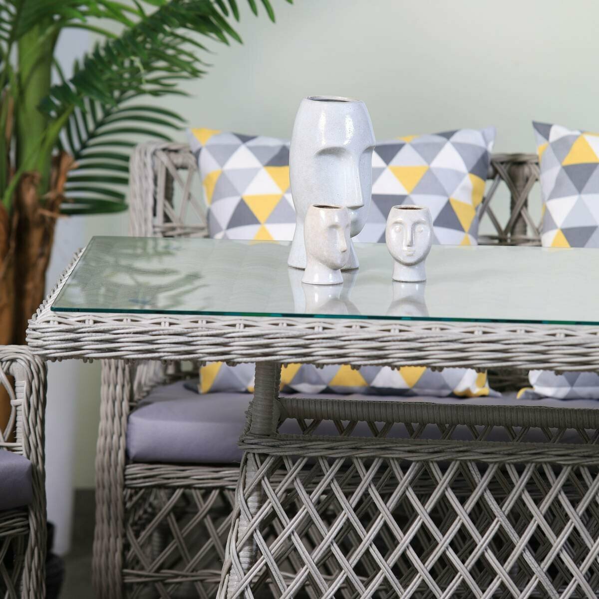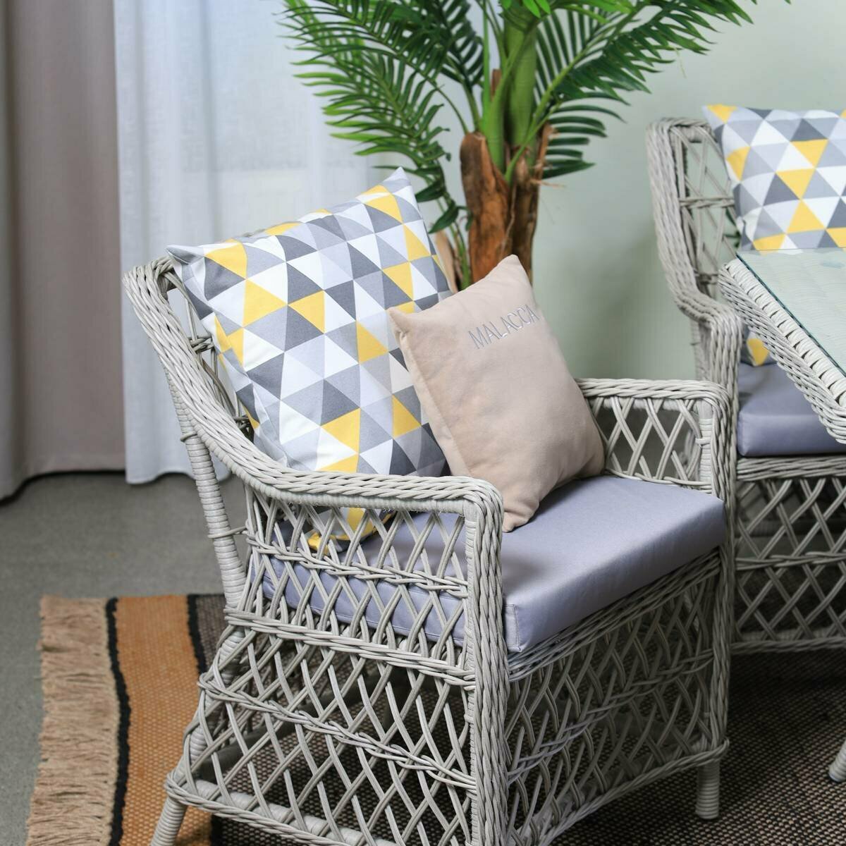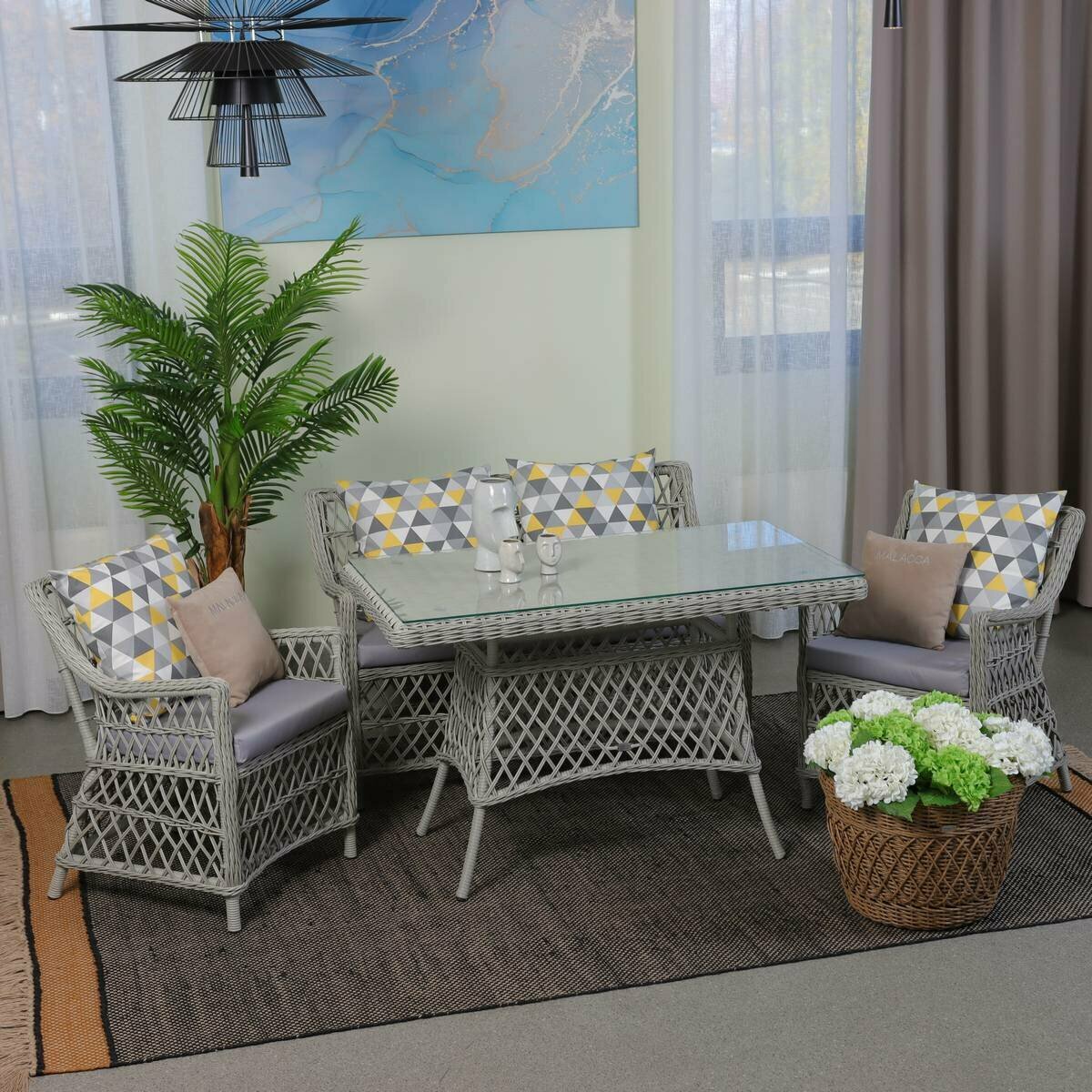 Комплект плетеной мебели Гайс из ротанга с подушками (обеденный стол+скамья+2 кресла), для сада, сицилия+ракушки