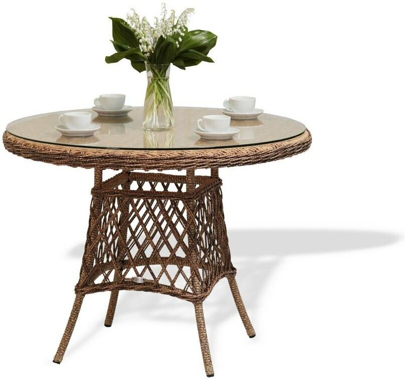 Комплект плетеной мебели Гайс MALACCA из ротанга с подушками (обеденный круглый стол + 4 кресла), искусственный ротанг, зебрано