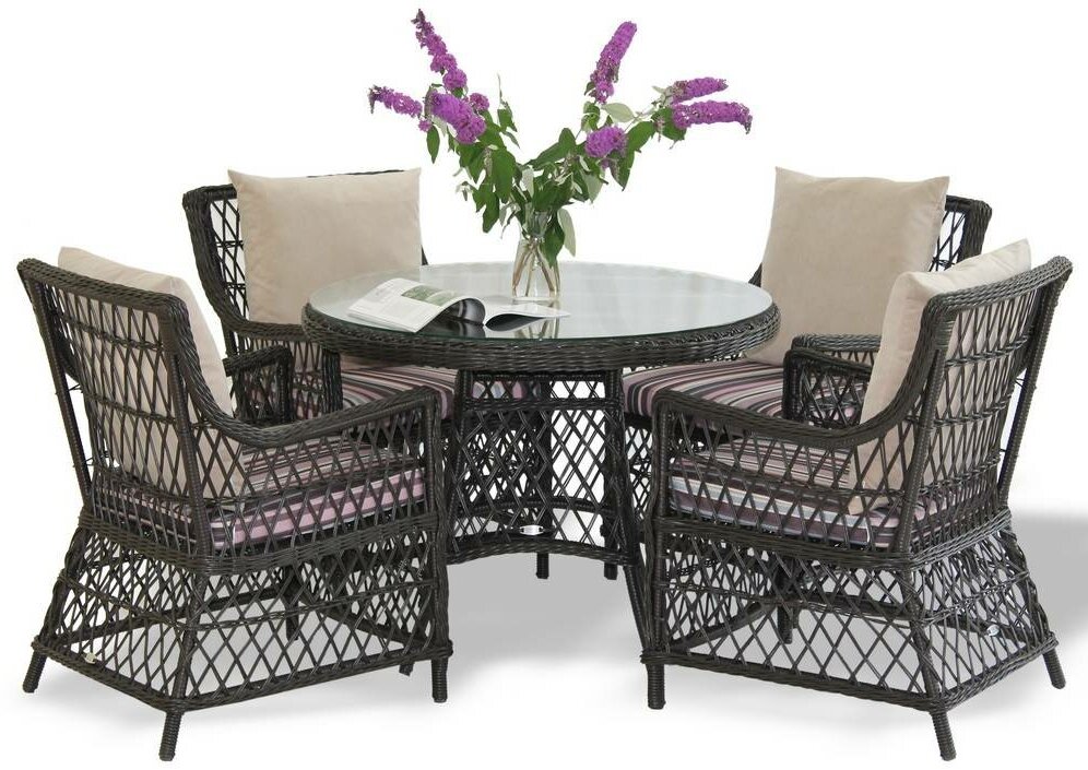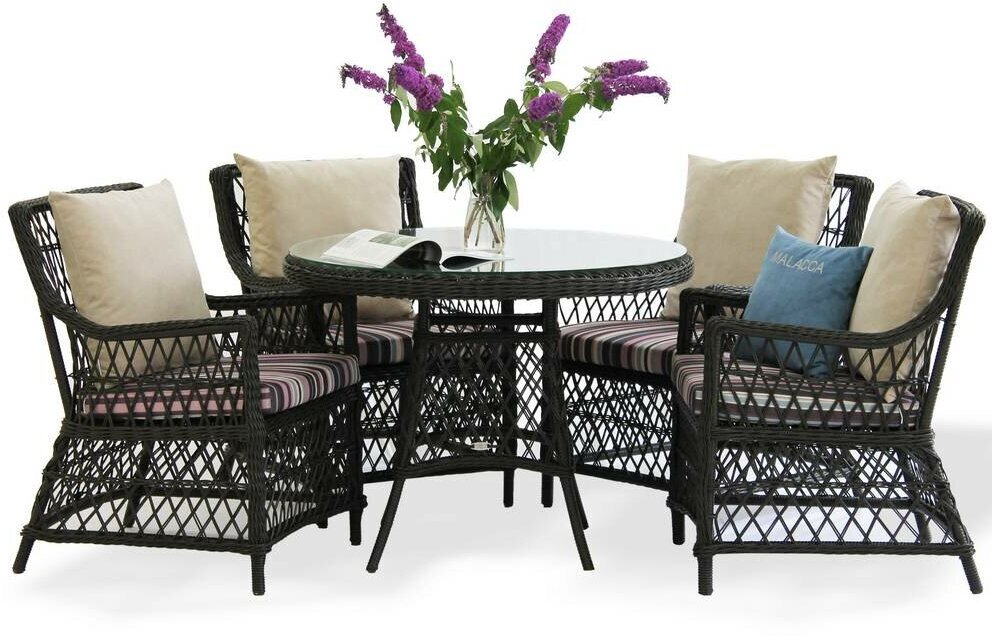 Купить Комплект плетеной мебели Гайс MALACCA из ротанга с подушками (круглый стол + 4 кресла), искусственный ротанг, венге