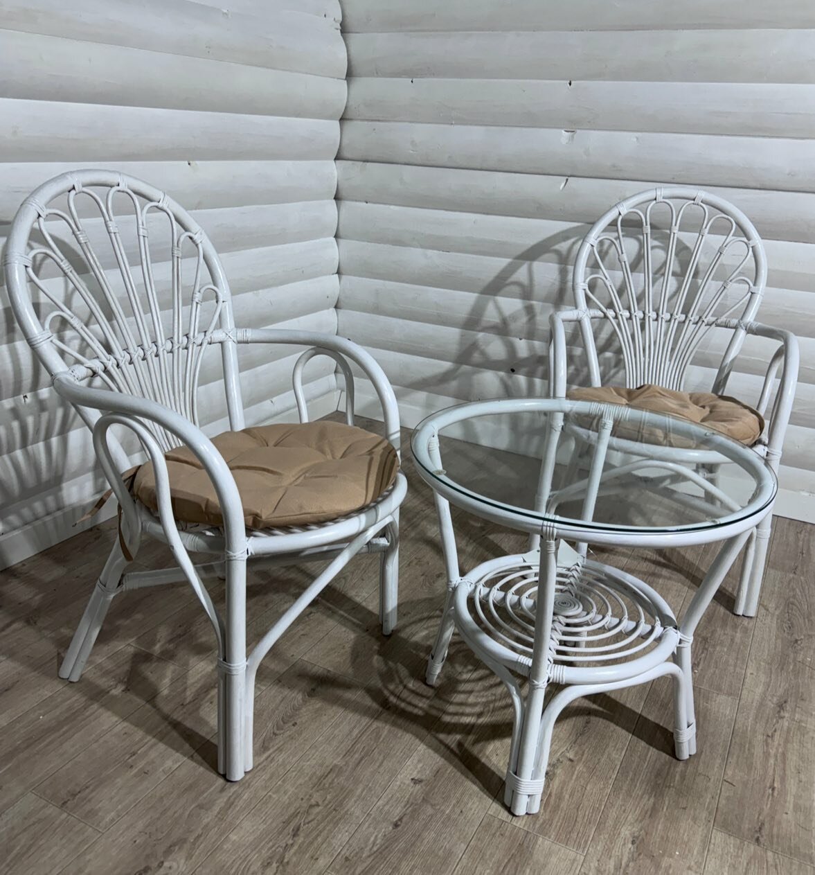 Комплект мебели "Саммер Дуэт" из натурального ротанга белый интересное: