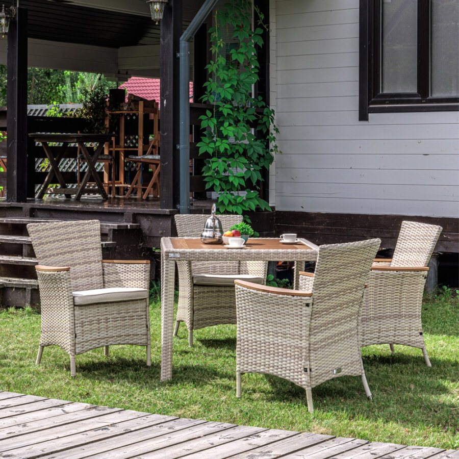 Купить Обеденный комплект ROYAL FAMILY AMELIA на 4 персон Ротанг: Бежевый/Подушки: Бежевые