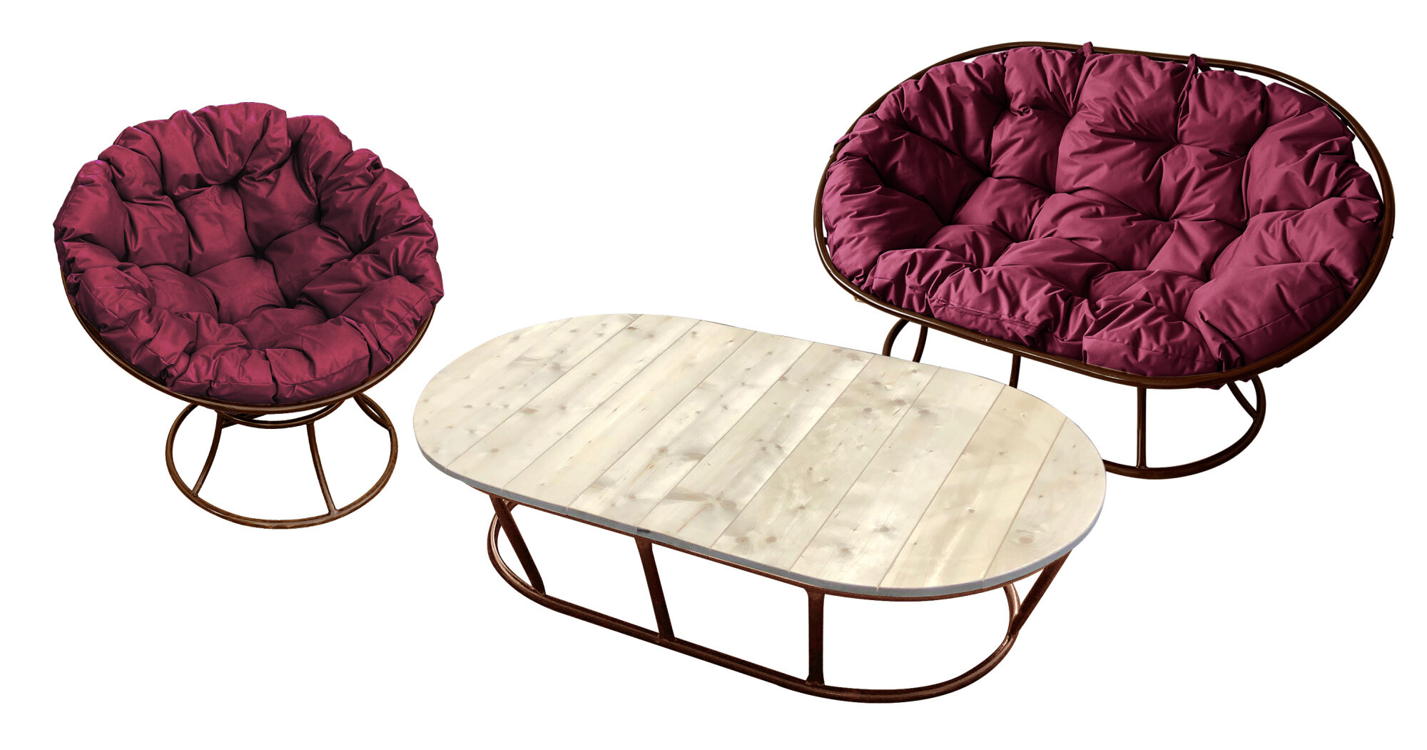 Комплект M-group мамасан, папасан и стол без ротанга белое бордовая подушка интересное: