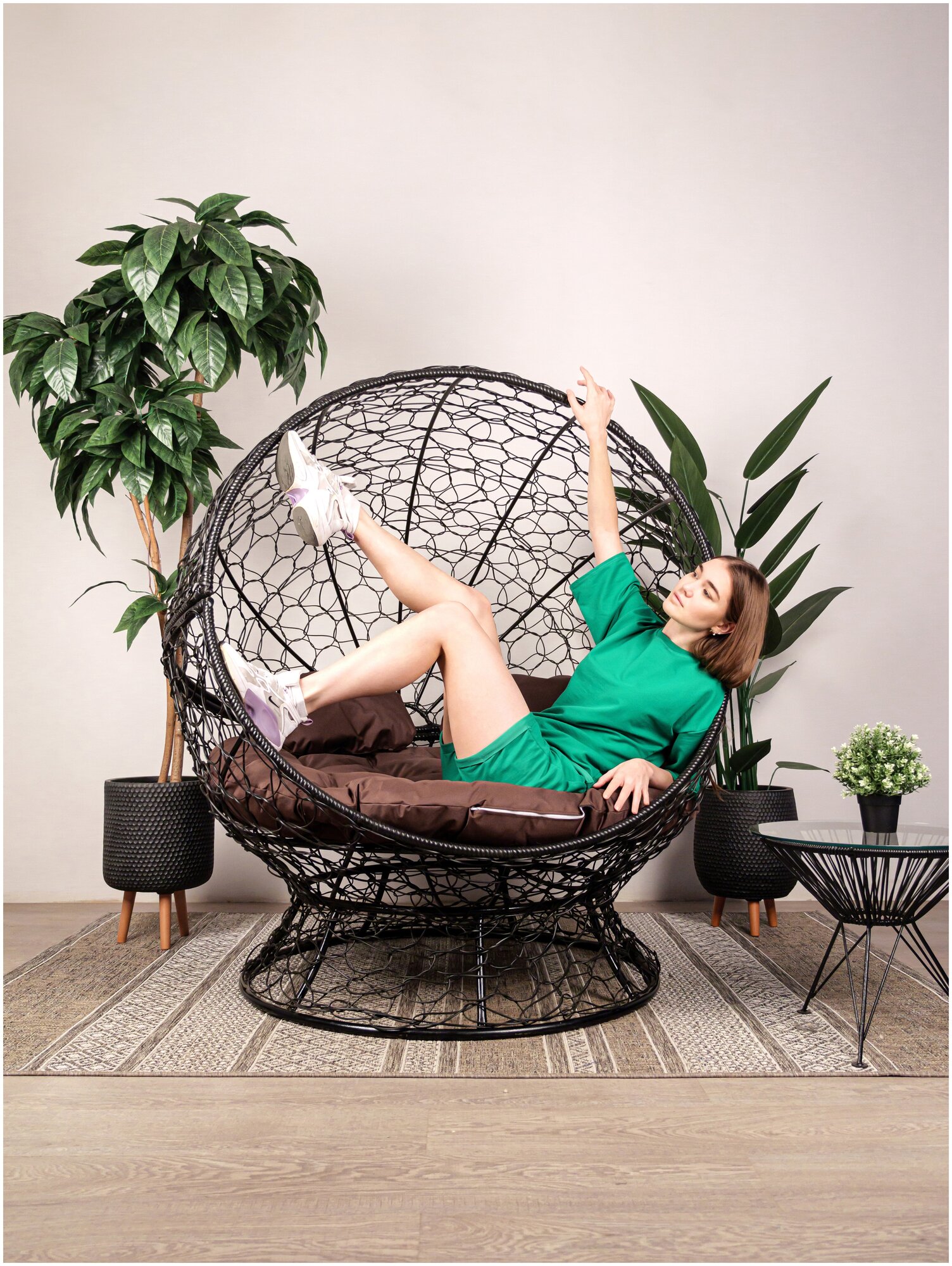 Кресло M-group апельсин с ротангом чёрное, коричневая подушка интересное: