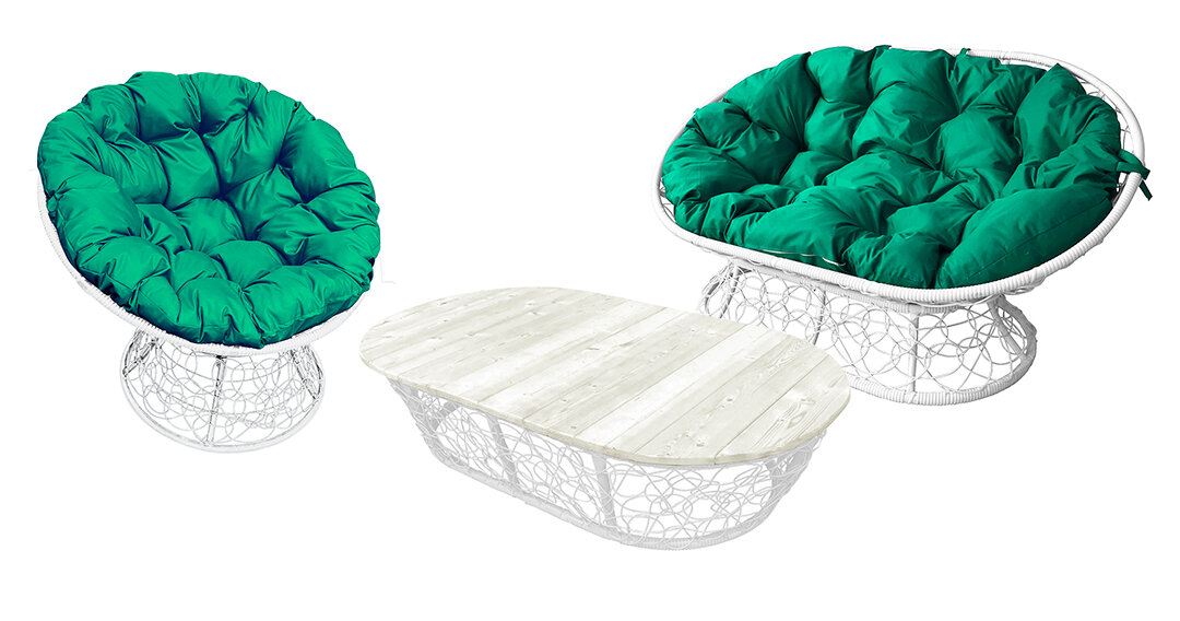Комплект M-group мамасан, папасан и стол с ротангом белое зелёная подушка интересное:
