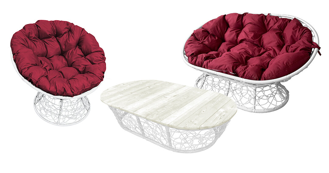 Комплект M-group мамасан, папасан и стол с ротангом белое бордовая подушка интересное: