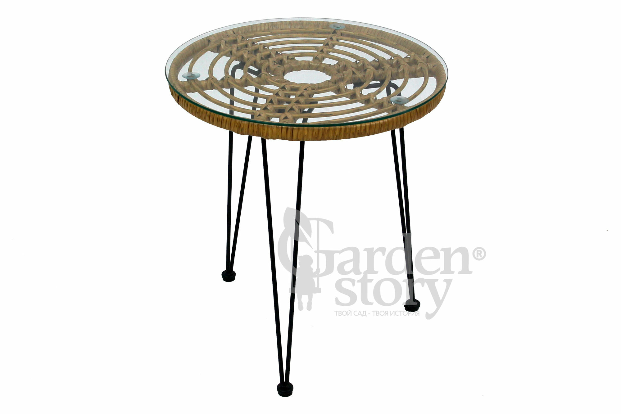 Набор мебели Адриан Мини арт. GS008 бежевый, синий (2 стула+стол Ø52см, каркас черный, ротанг беж.) "Garden story" интересное: