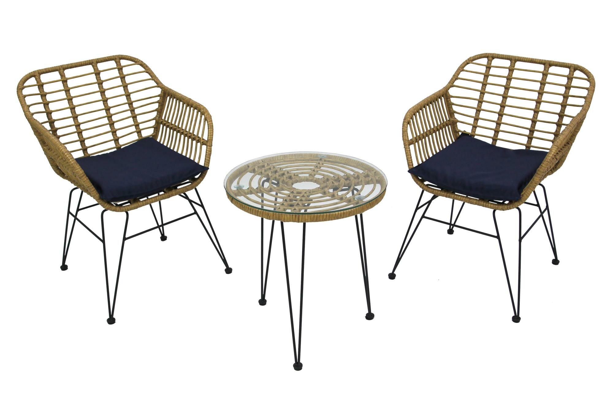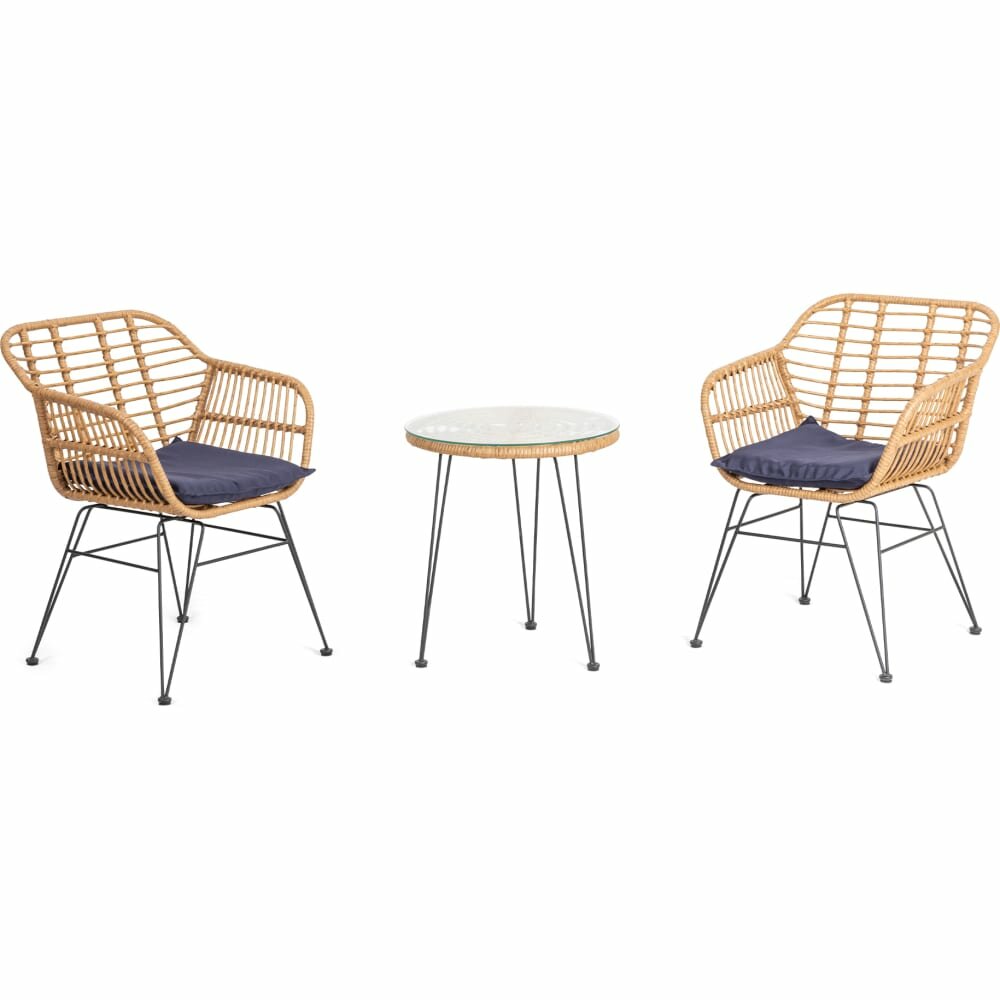Купить Набор мебели Адриан Мини арт. GS008 бежевый, синий (2 стула+стол Ø52см, каркас черный, ротанг беж.) "Garden story"