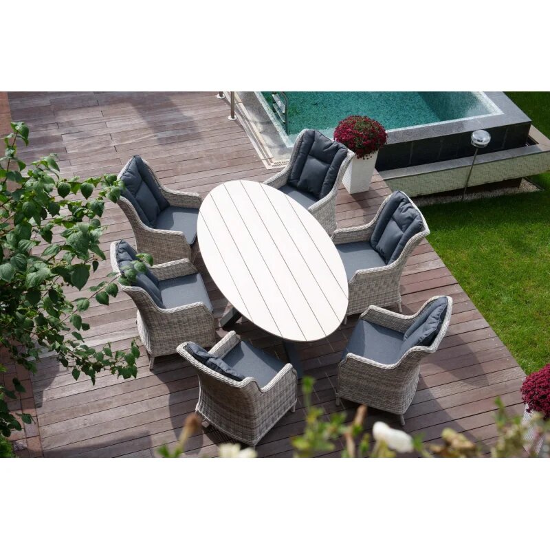Купить Комплект мебели Besta Fiesta "Бергамо и Лугано", обеденный стол, 6 кресел, искусственный ротанг, цвет серый
