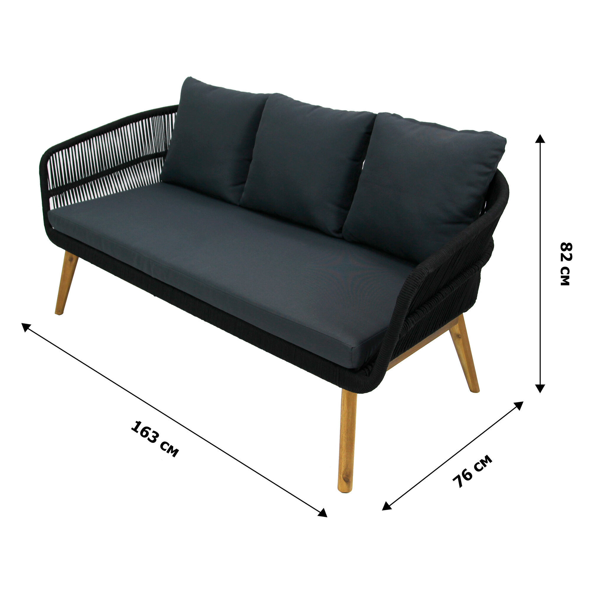 Купить Набор мебели Камелия арт. GS002 черный, серый 1 уп. (стол+2кресла+диван, веревки черные, подушки серые) "Garden story"