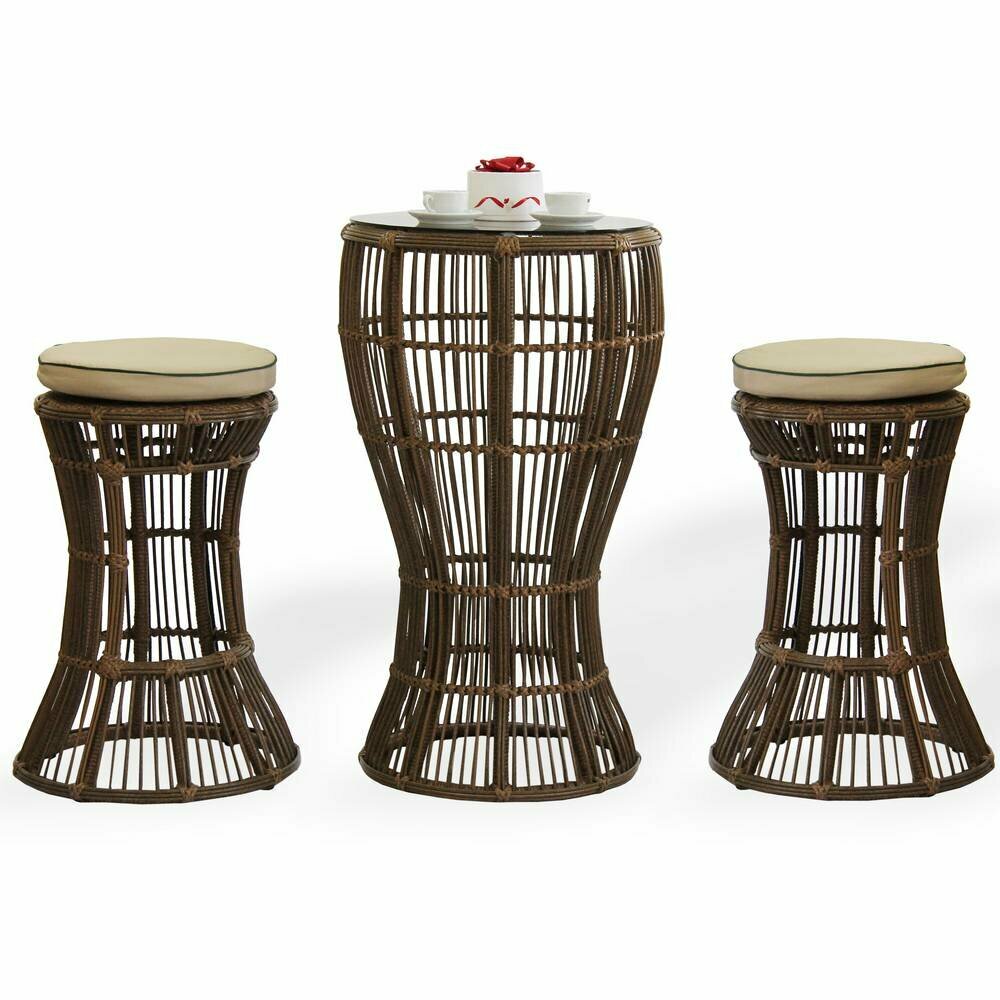 Барный комплект Malacca Лучиано, искусственный ротанг/металл/стекло/текстиль интересное: