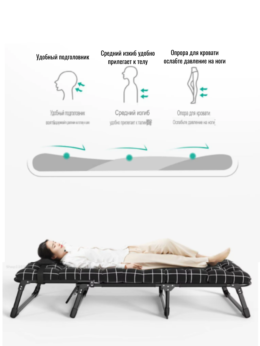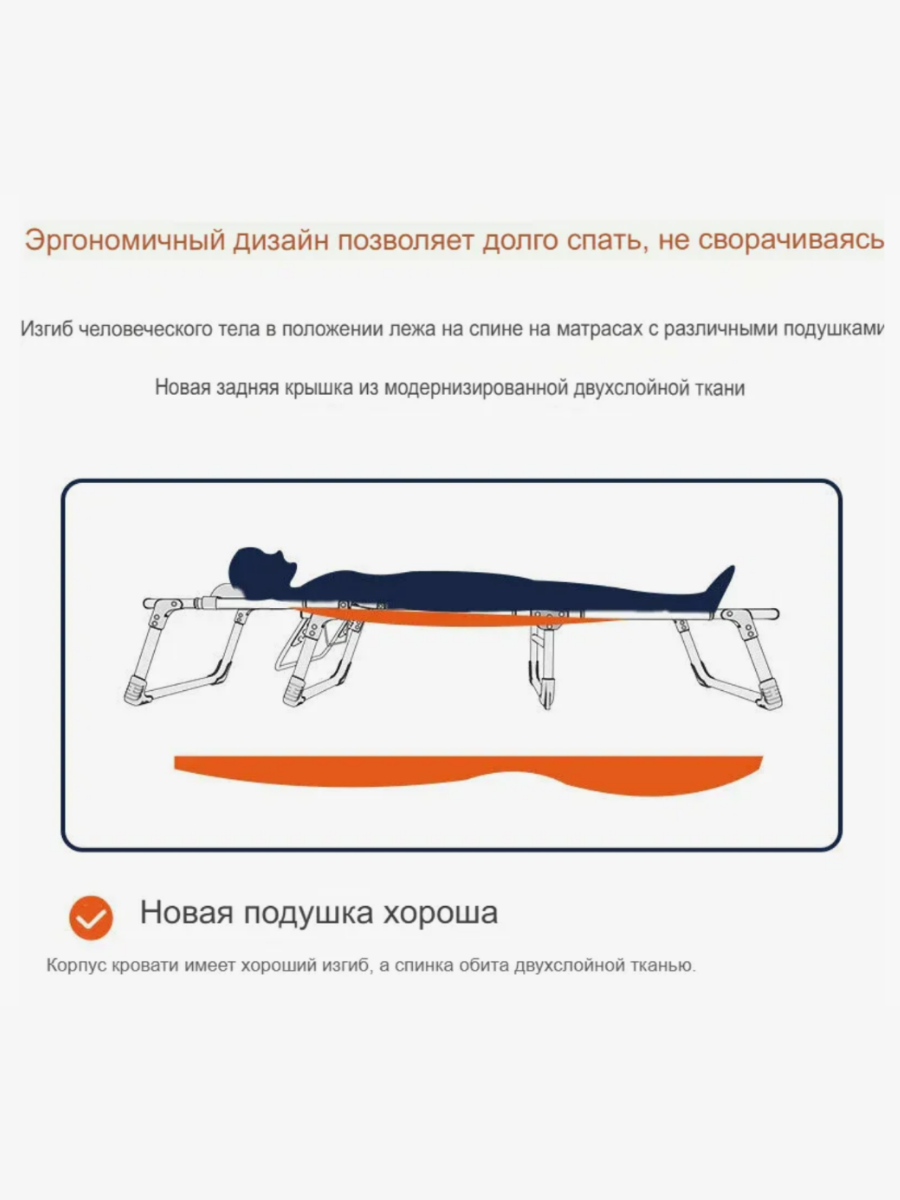 Раскладушка кровать с матрасом и подголовником, нагрузка до 200 кг, 190*75*30 интересное: