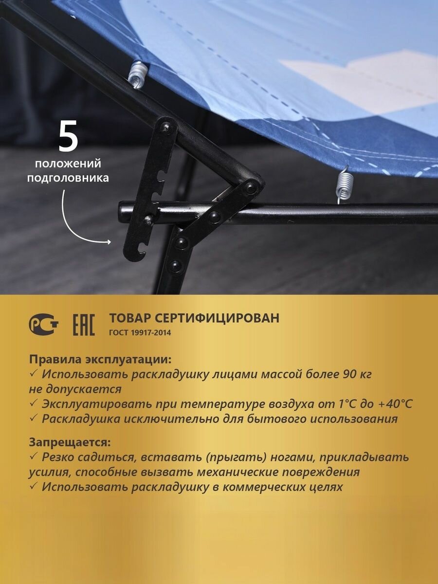 Раскладушка с ватным матрасом ПЭ взрослая КР-70, спальное место 65*192, регулируемый подголовник интересное: