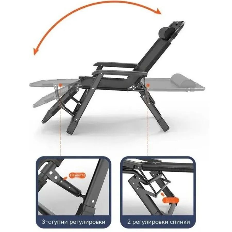 Кресло-шезлонг (раскладушка) складное с матрасом для дачи и дома, цвет серый интересное: