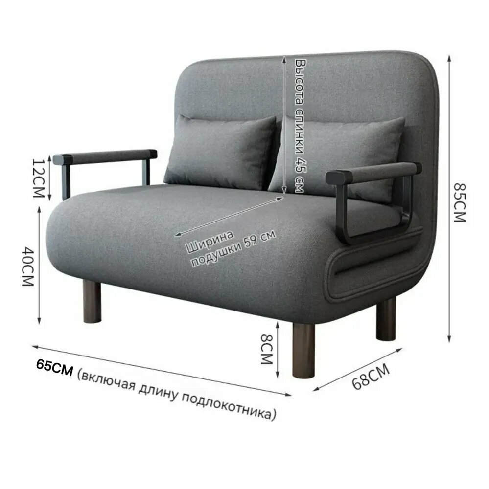 Раскладушка, двухспальная, 190 см x 65 см x 50 см, светло-серая