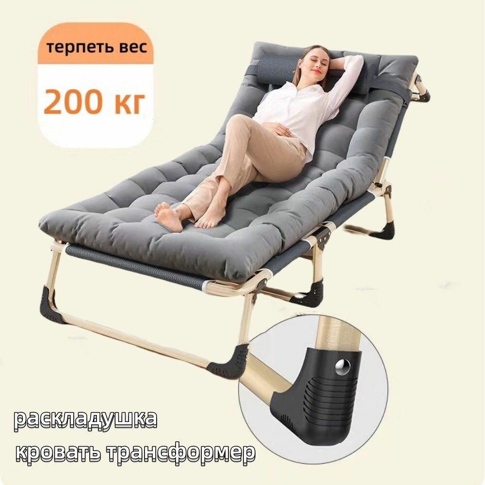 Раскладушка с матрасом взрослая (толщиной 6 см) , трансформер кровать туристическая, для дома и отдыха на природе /садовая мебель до 150 кг интересное: