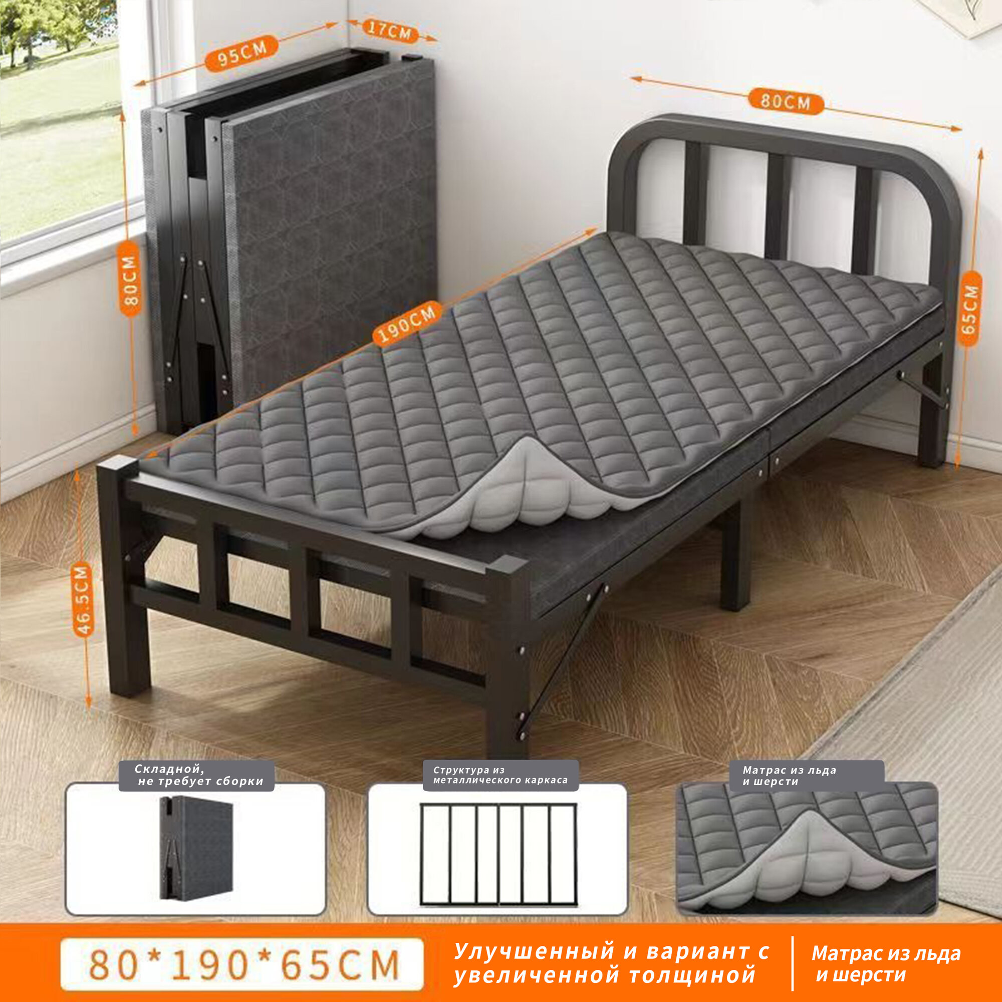 Складывающаяся кровать, простая в хранении, имеет укрепленную поддержку, размер: 190х80х47 см. интересное: