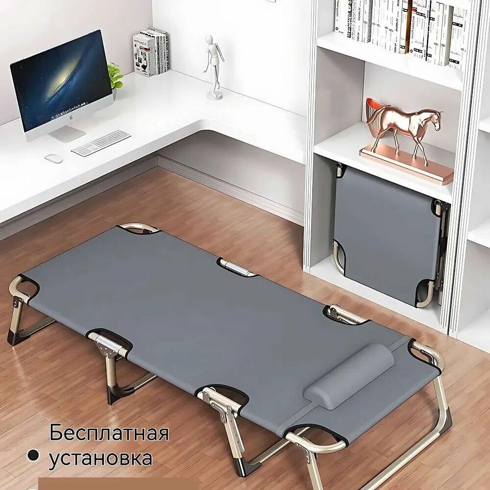 Раскладушка B05J, 173×56×30 см, алюминиевая, с подголовником, тёмно-серая интересное: