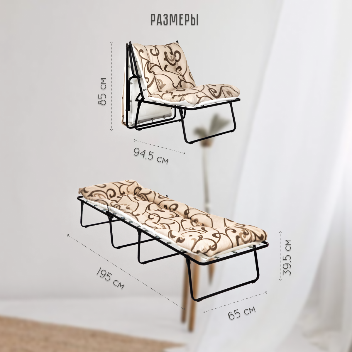 Раскладушка-кресло Olsa "Лира" 195 x 65 x 39,5 см, максимальная нагрузка 120 кг интересное: