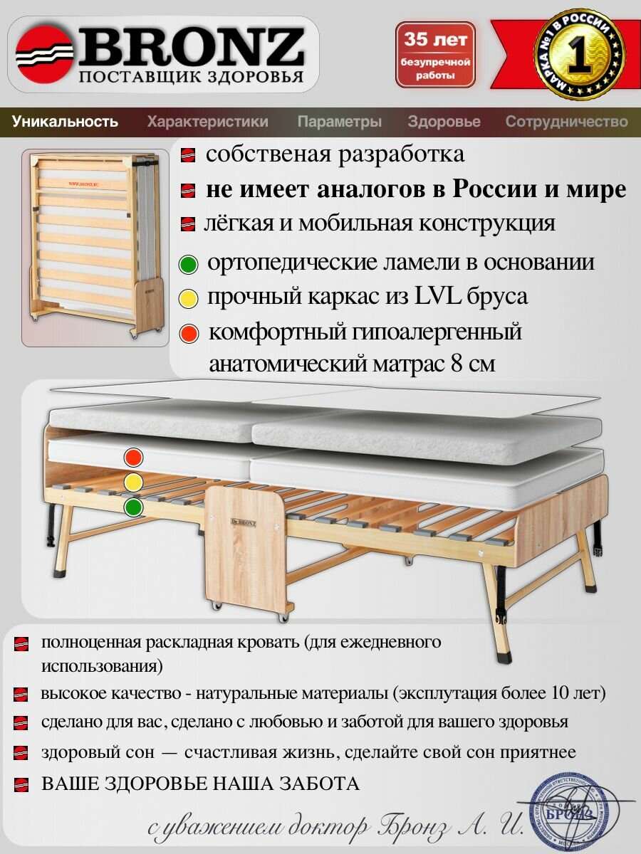 Раскладушка с матрасом взрослая Dr.Bronz Основа Сна 80*190 см Эндгрейн интересное: