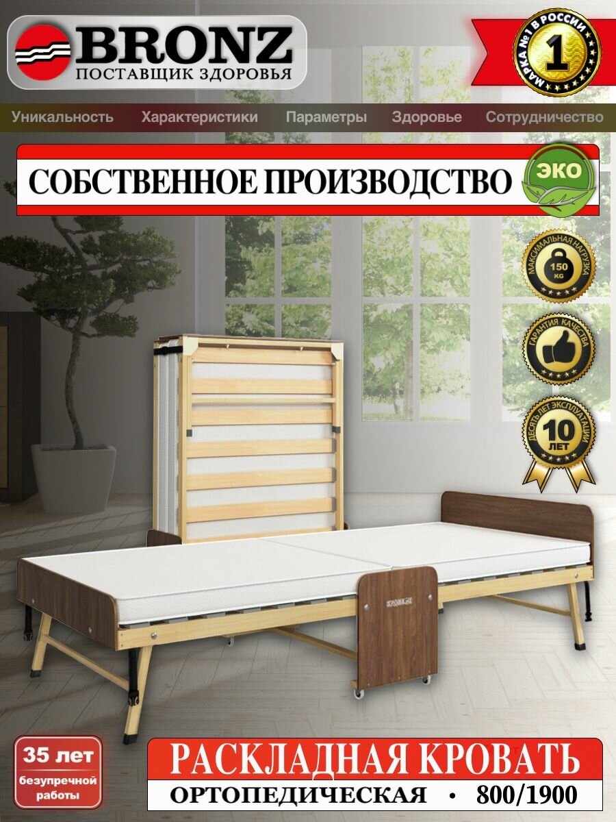 Раскладушка с матрасом взрослая Dr.Bronz Основа Сна 80*190 см Орех классический интересное: