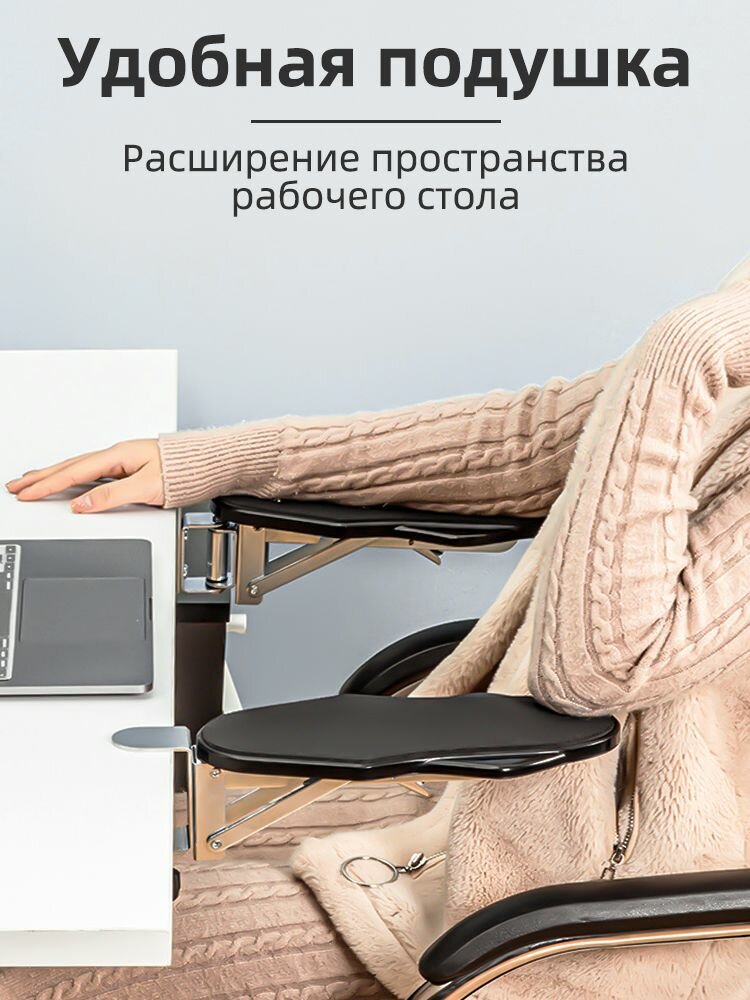 Черный подлокотник для компьютерного стола - опора для рук и локтей с удобной эргономикой и фиксацией в любом положении. интересное: