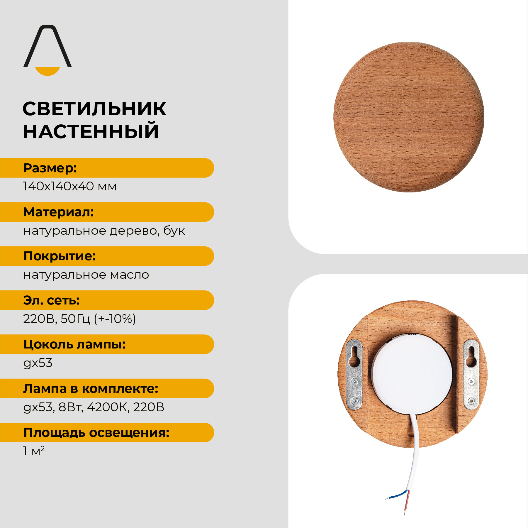 Светильник настенный, бра, деревянный, круглый, GX53 "Люминика" интересное: