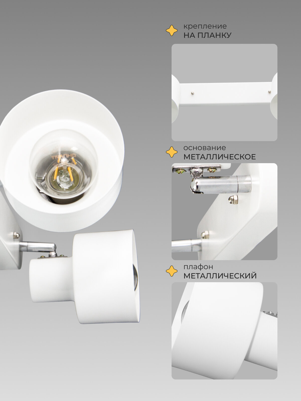 СохранитьСветильник настенный Спот 21 Век свет Лофт 2 лампы Белый Е27, площадь освещения 10 м² интересное: