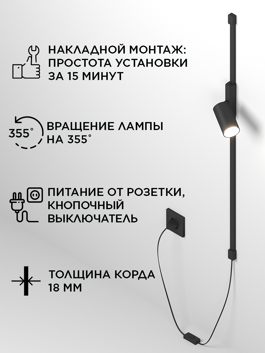 Купить Настенный бра Cordini GU 10, тёплый свет 3000K, 1м, 1 светильник, черный