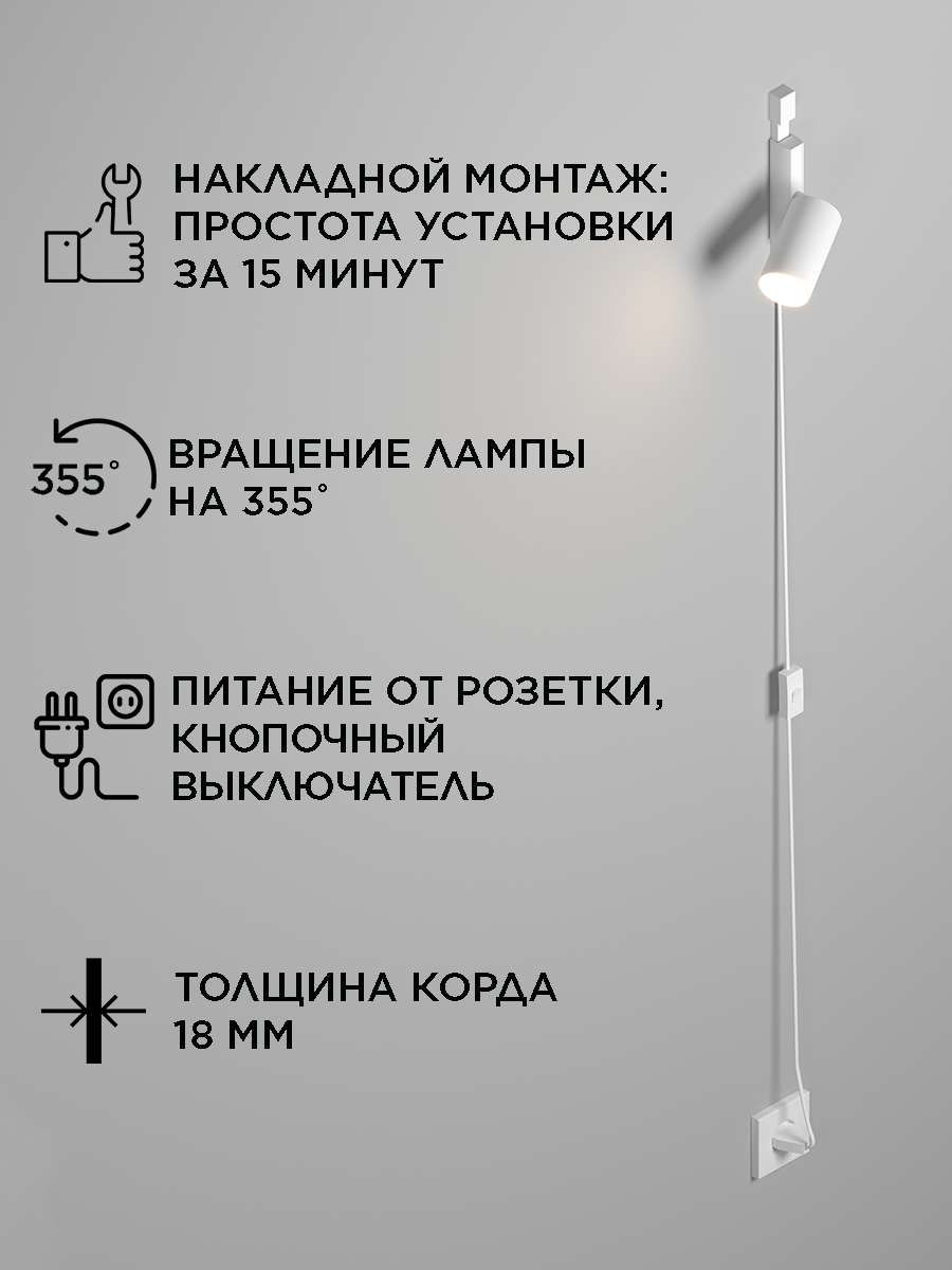 Настенный бра Cordini GU 10, тёплый свет 3000K, 1.5м, 2 светильника, белый