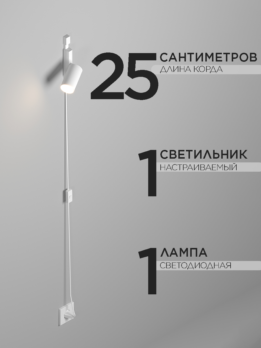 Настенный бра Cordini GU 10, тёплый свет 3000K, 1м, 1 светильник, белый