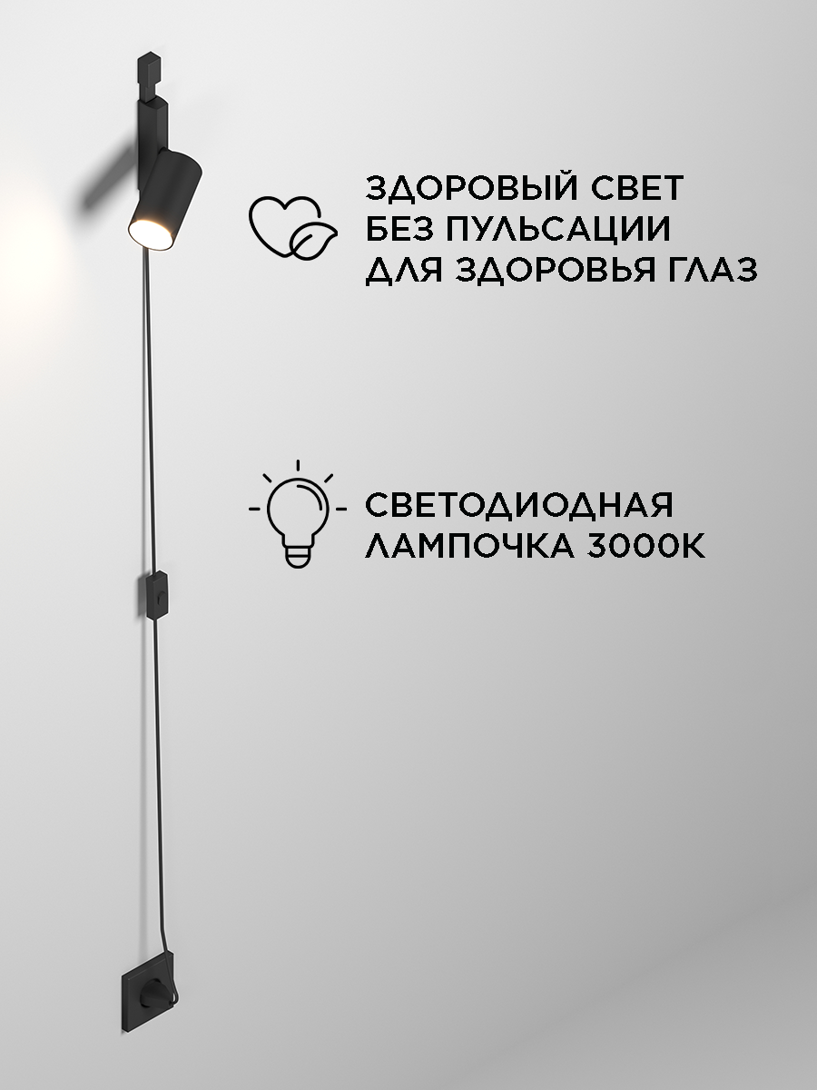 Настенный бра Cordini GU 10, тёплый свет 3000K, 1м, 1 светильник, черный