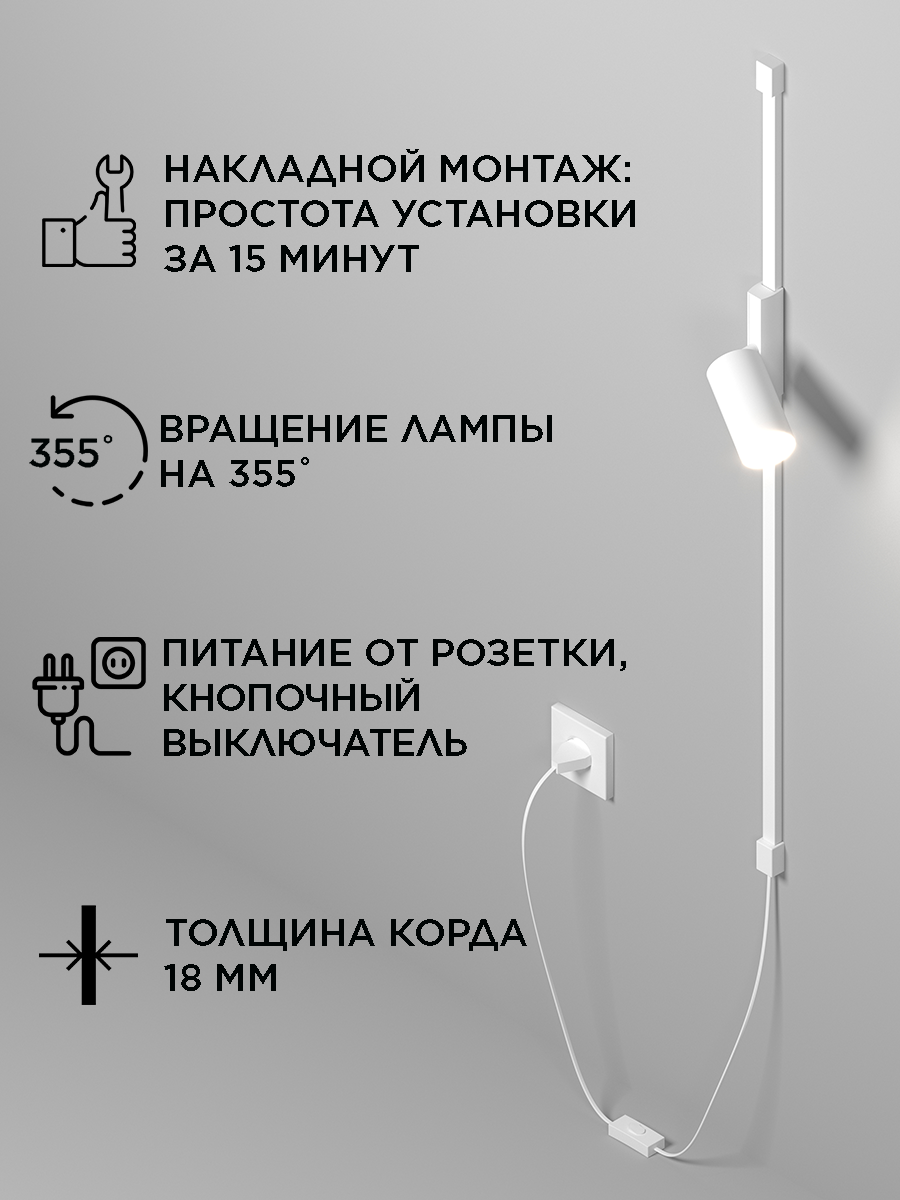 Купить Настенный бра Cordini GU 10, тёплый свет 3000K, 1м, 1 светильник, белый