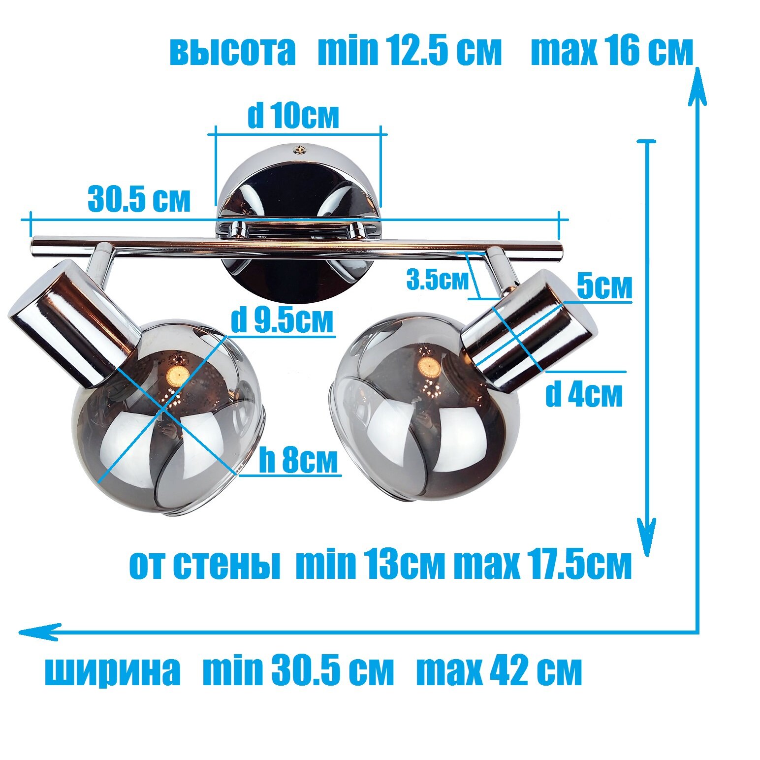 СохранитьСпот поворотный, бра, светильник настенный поворотный MО 83-5933/2-CR, Е14, 2х60 Вт интересное: