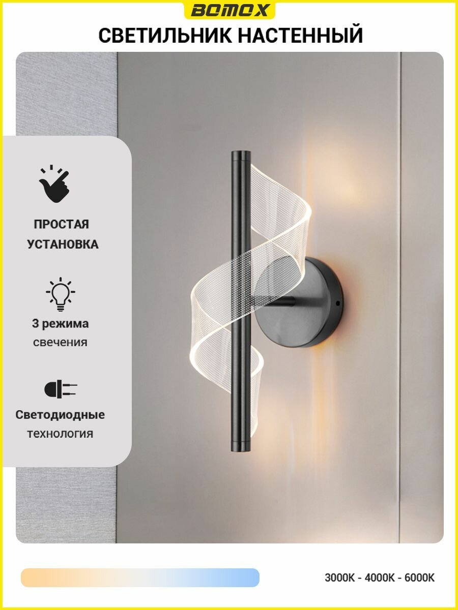 Светильник настенный светодиодный, регулируемый трехцветный настенный бра для спальня / гостиная интересное: