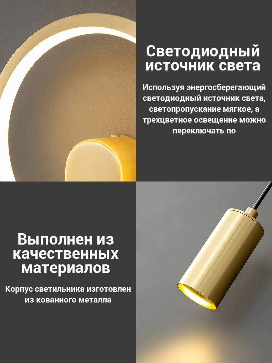 BOMOX Светильник настенный светодиодный, регулируемый трехцветный настенный бра для спальня / гостиная интересное: