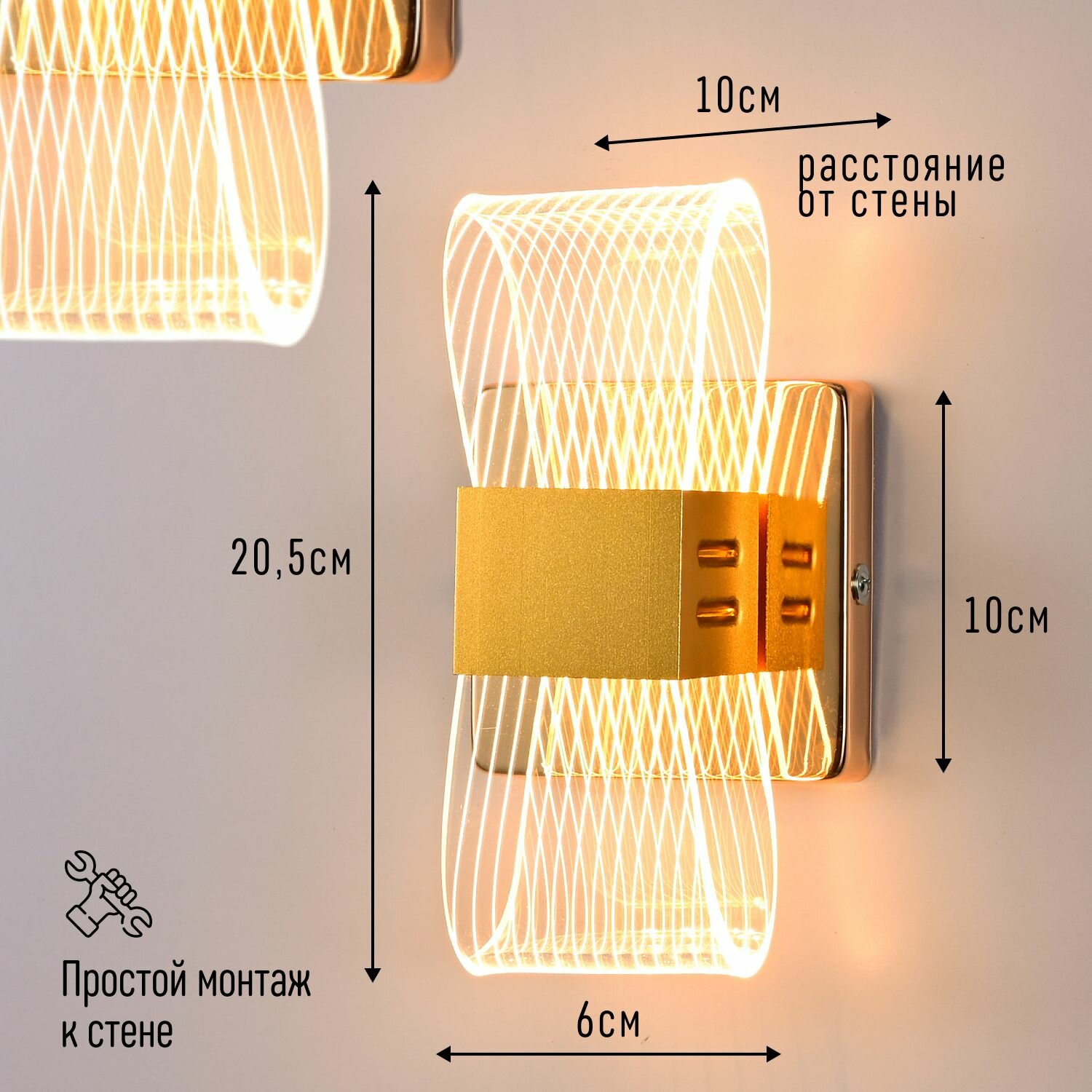 Бра настенные, светильник настенный, Бра светодиодные ЭлисСвет 6528/2W GD