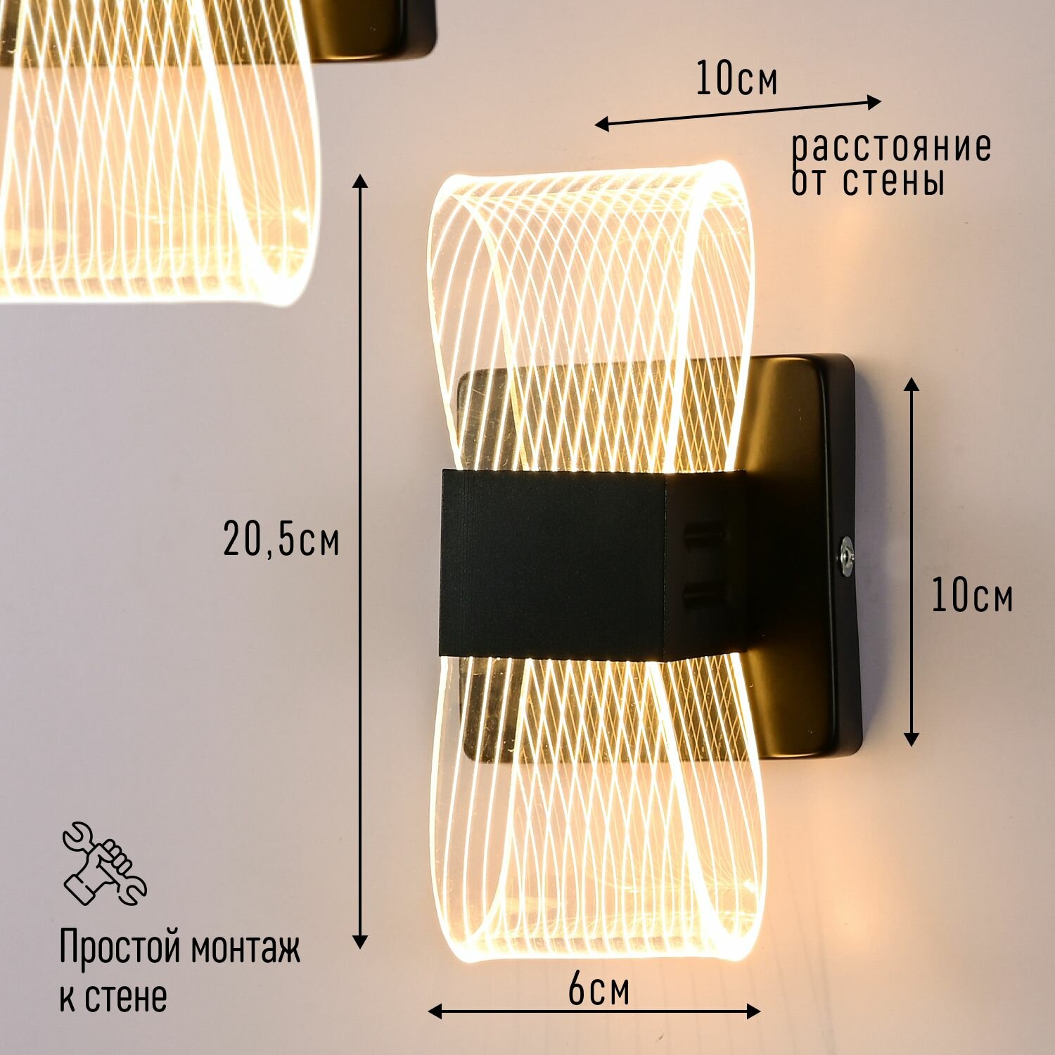 Бра настенные, светильник настенный, Бра светодиодные ЭлисСвет 6528/2W BK