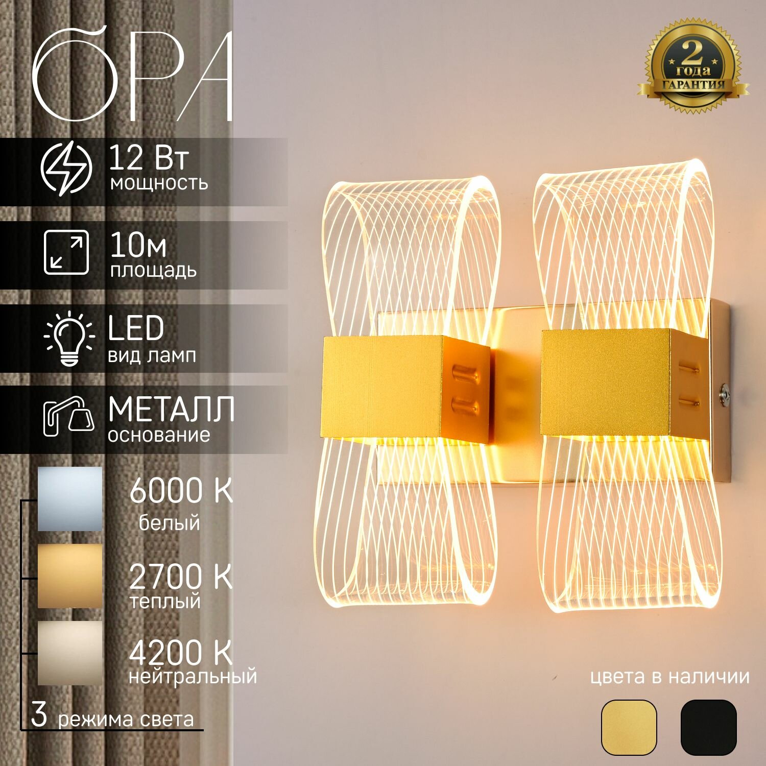 СохранитьБра настенные, светильник настенный, Бра светодиодные ЭлисСвет 6527/2W GD интересное: