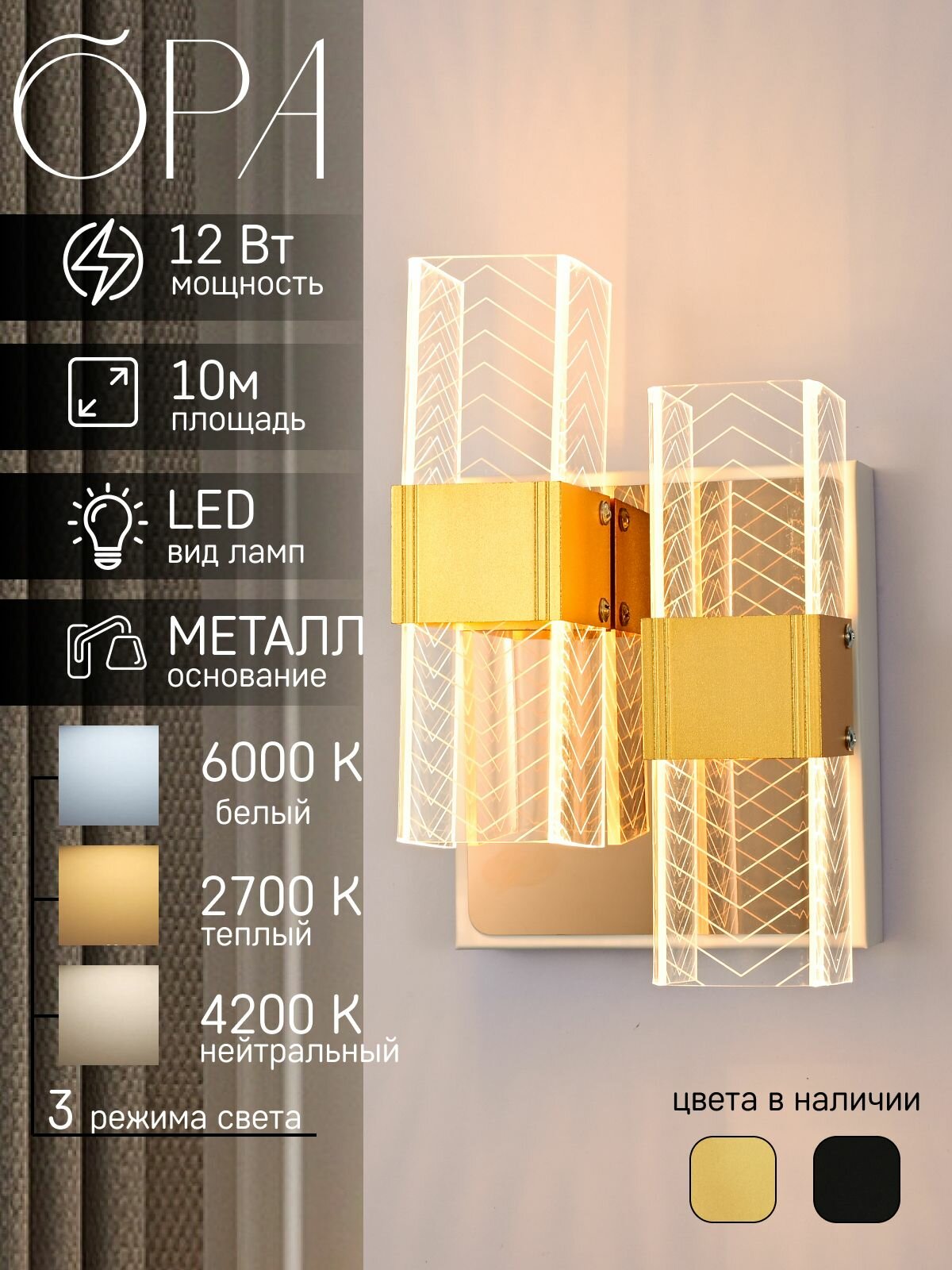 СохранитьБра настенные, светильник настенный, Бра светодиодные ЭлисСвет 6528/2W GD интересное: