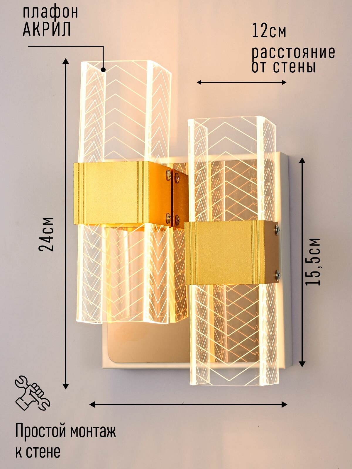 Бра настенные, светильник настенный, Бра светодиодные ЭлисСвет 6527/2W GD