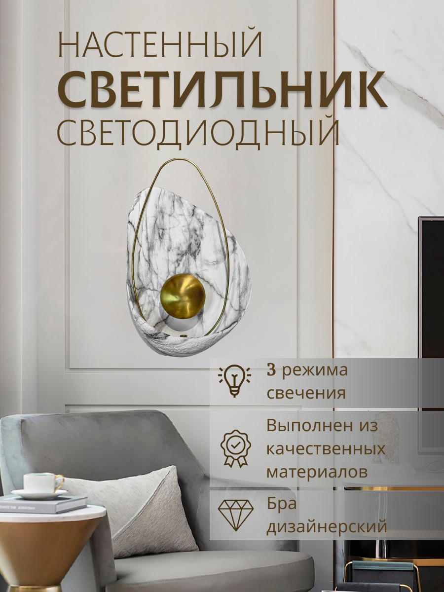 Настенный светильник светодиодный LED с 3 режимами освещения, белый мрамор интересное: