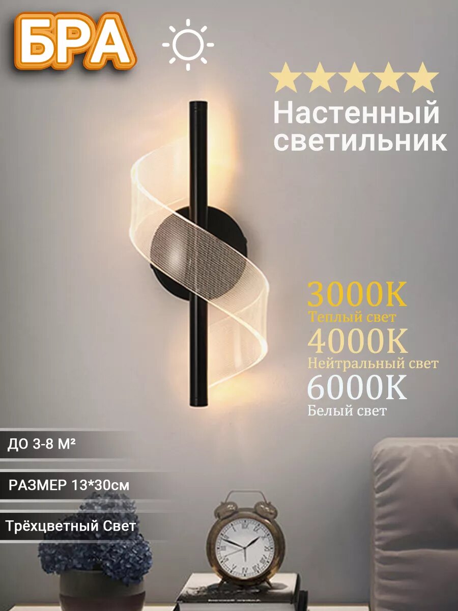 Бра Светильник настенный светодиодный (черный) интересное: