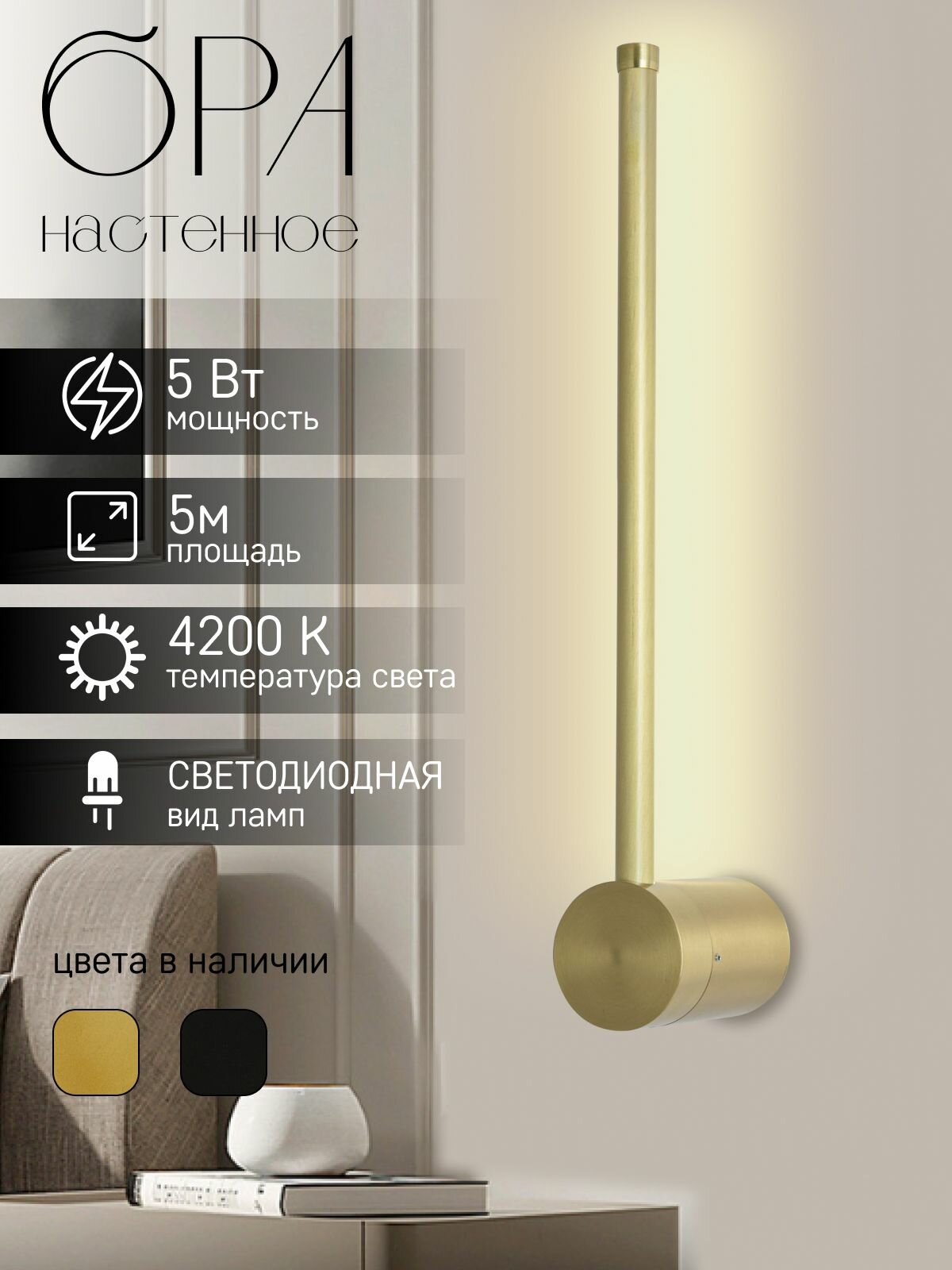 Бра настенное светодиодное, светильник настенный ЭлисСвет 5101-B/1W-400 GD интересное: