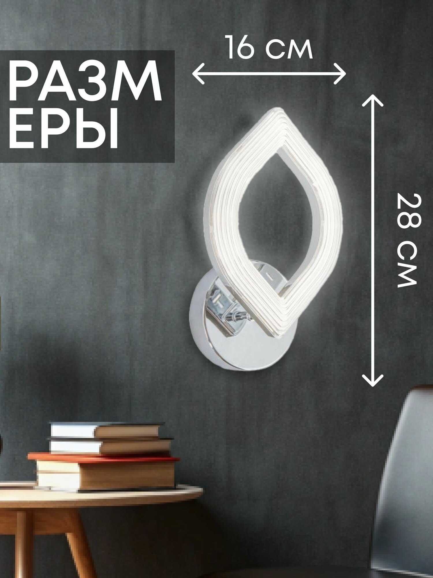 Бра настенный светильник светодиодный LED 16Вт 3000K-6000K хром