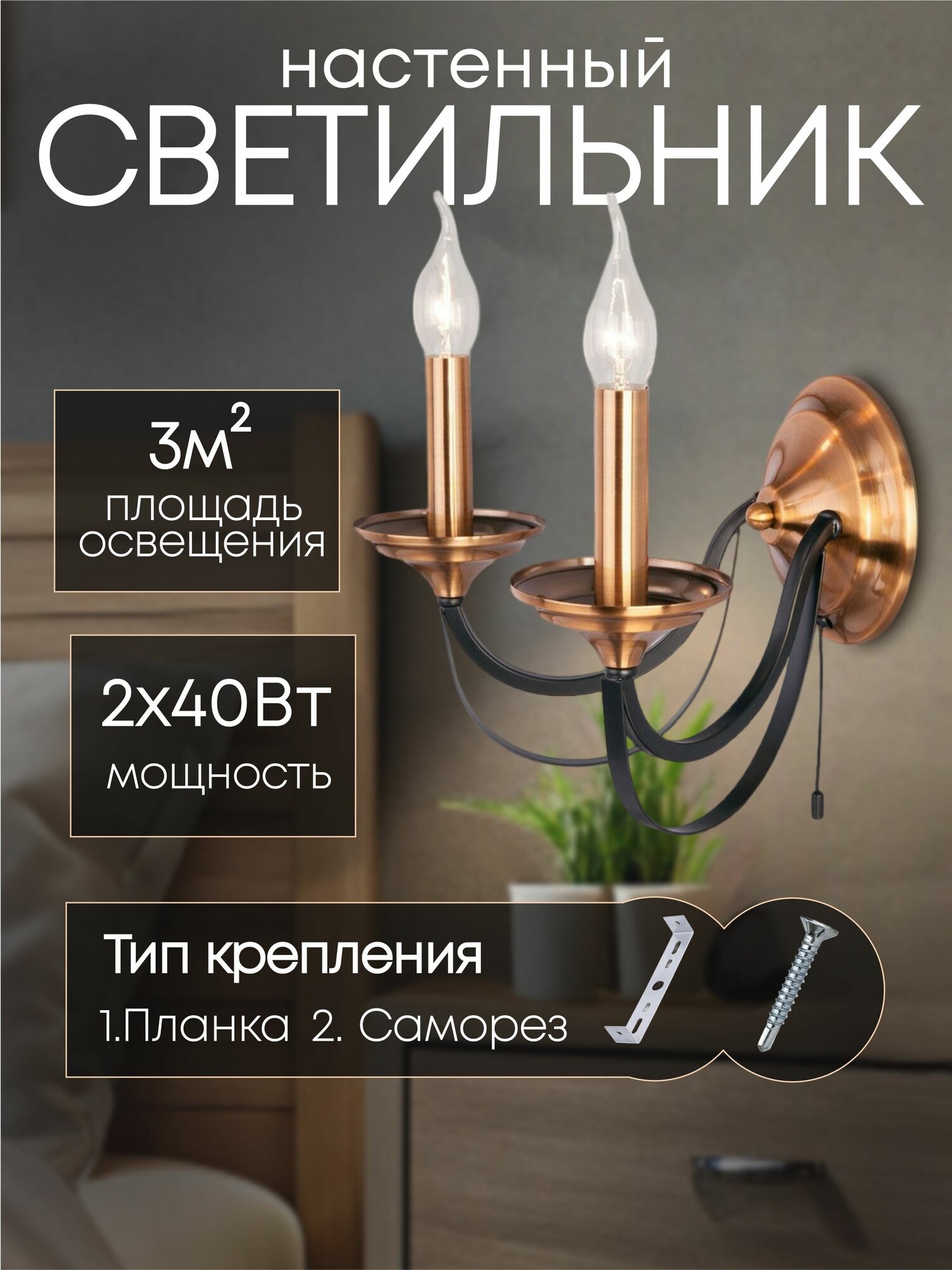 СохранитьБра настенный светильник светодиодный черный /бронза 40W E14 h205 интересное: