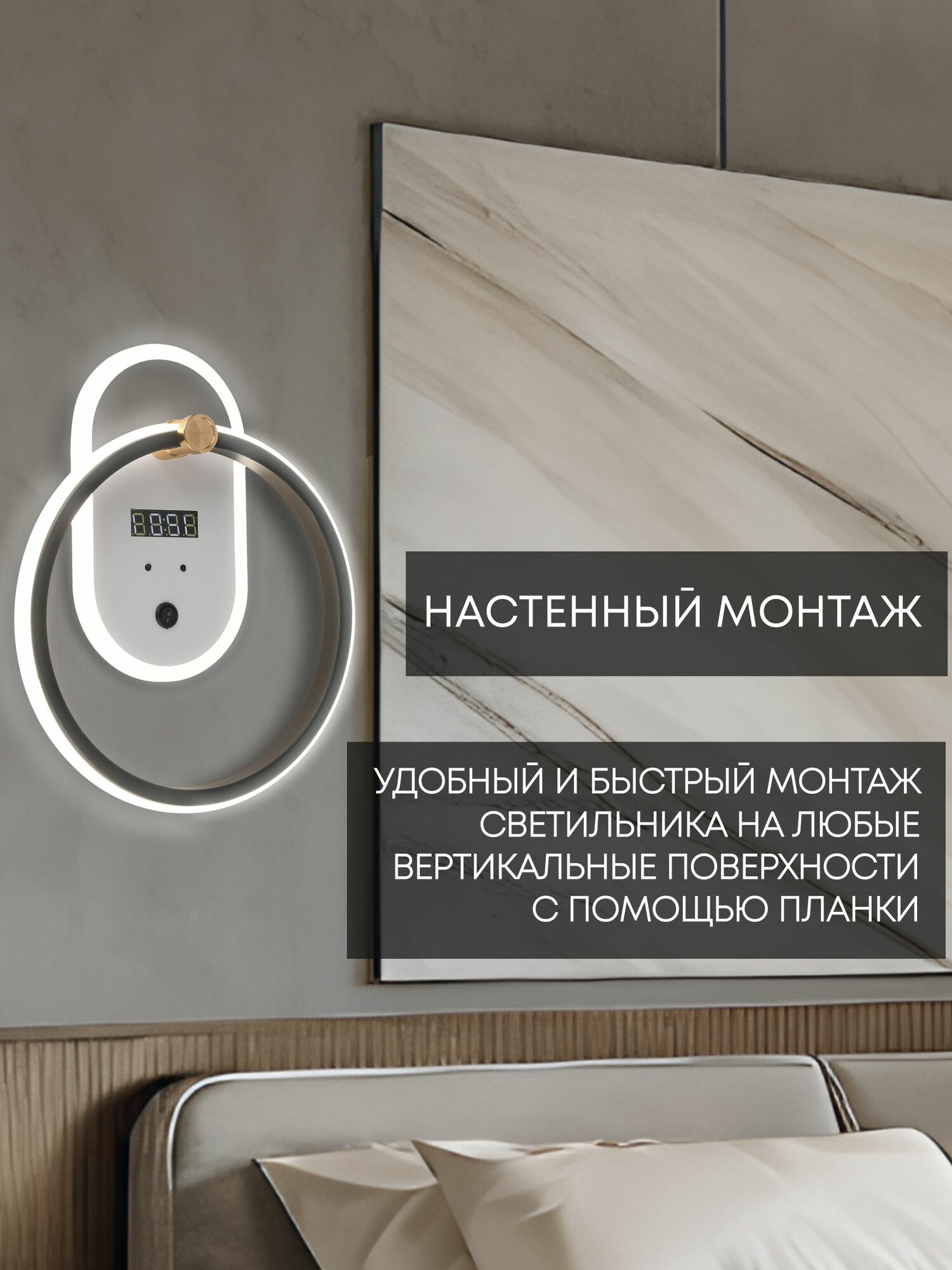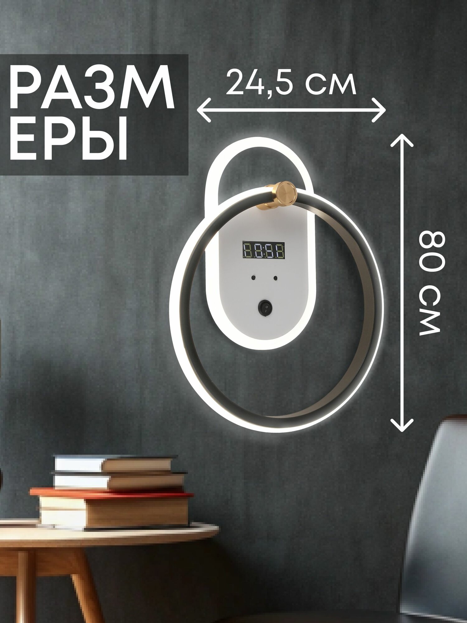 СохранитьБра настенный светильник светодиодный с часами LED 48Вт 3000K-6000K белый/черный интересное: